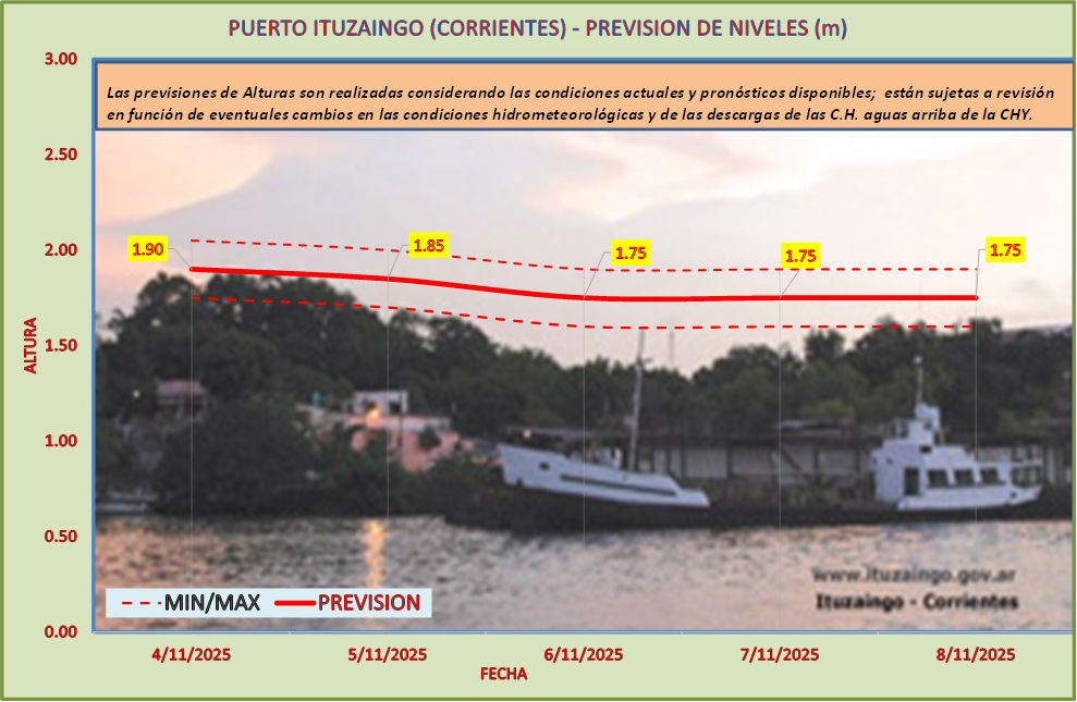Las previsiones de Alturas son realizadas considerando las condiciones actuales y pronósticos disponibles y están sujetas a revisión en función de eventuales cambios en las condiciones hidrometeorológicas y de las descargas de las C.H. aguas arriba de la CHY.