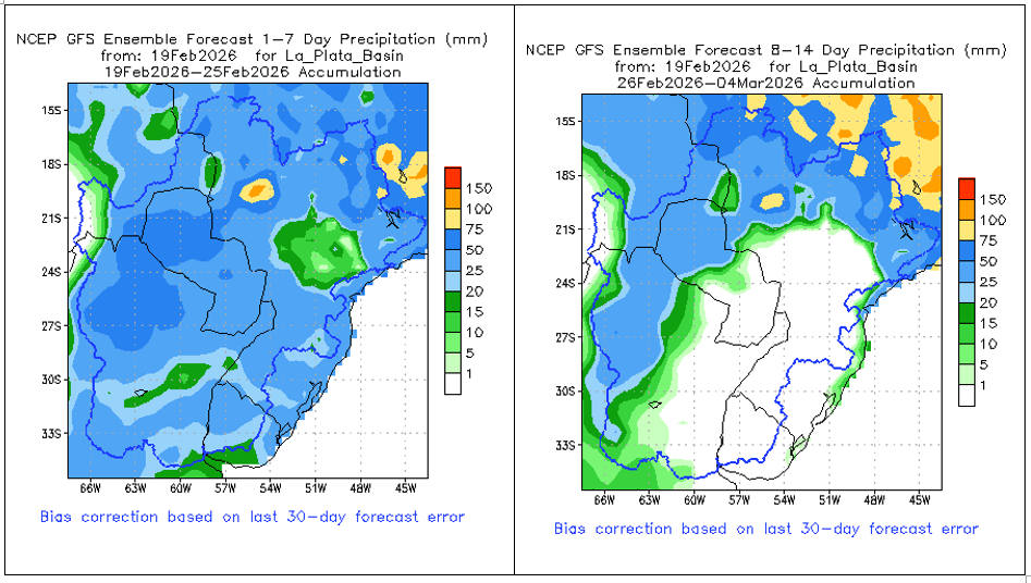 El pronóstico Hidrometeorológico del Centro Climático de referencia indica una tendencia semanal de poca significancia hidrológica en la cuenca de interés para la CHY con dispersión geográfica según sea la fuente consultada. (Ver gráfico Nro. 1).