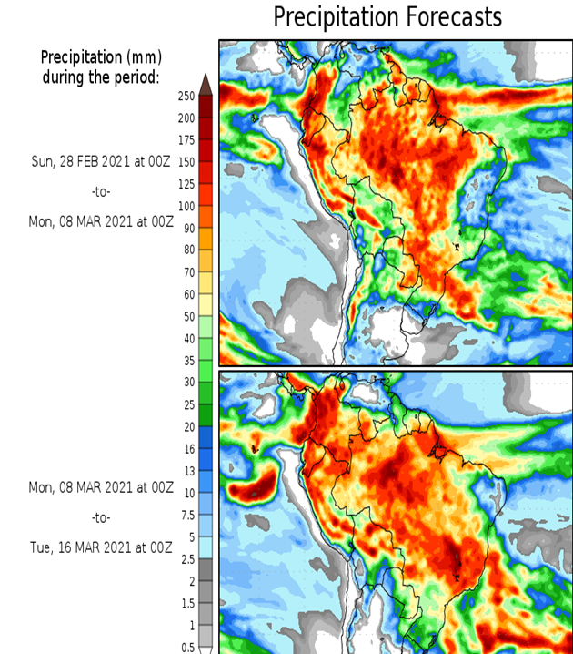 El pronóstico Hidrometeorológico del Centro Climático de referencia indica una tendencia semanal de poca significancia hidrológica en la cuenca de interés para la CHY con dispersión geográfica según sea la fuente consultada. (Ver gráfico Nro. 1).
