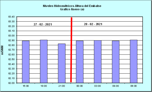 Nivel de Ayer (06:00 hs) = 82.91 mSNM Nivel de Hoy (06:00 hs) = 82.90 mSNM
