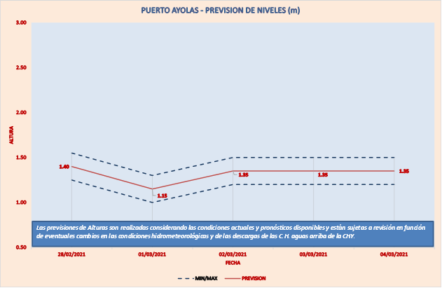 Las previsiones de Alturas son realizadas considerando las condiciones actuales y pronósticos disponibles y están sujetas a revisión en función de eventuales cambios en las condiciones hidrometeorológicas y de las descargas de las C.H. aguas arriba de la CHY.