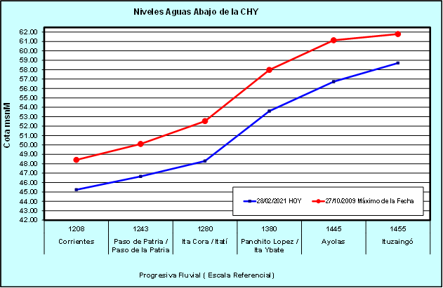 REFERENCIA: a modo de información – valores que originan riesgos de inundación en la zona de Ayolas.