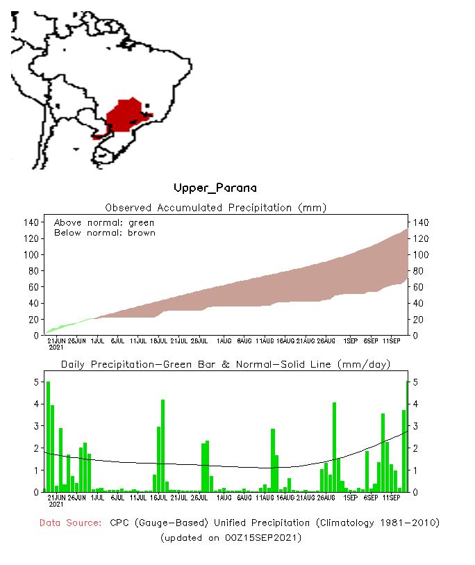 Los embalses de acumulación del Brasil que se ubican en la cuenca alta del río Paraná, aguas arriba de la Central Hidroeléctrica de Yacyretá, se encuentran con volúmenes útiles y niveles muy por debajo de lo normal debido a las escasas precipitaciones registradas.