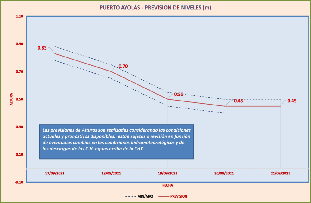 Las previsiones de Alturas son realizadas considerando las condiciones actuales y pronósticos disponibles y están sujetas a revisión en función de eventuales cambios en las condiciones hidrometeorológicas y de las descargas de las C.H. aguas arriba de la CHY.