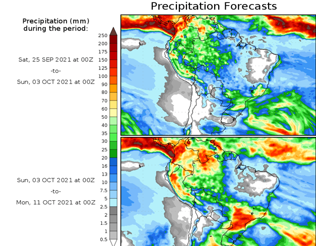 El pronóstico Hidrometeorológico del Centro Climático de referencia indica una tendencia semanal de poca significancia hidrológica en la cuenca de interés para la CHY con dispersión geográfica según sea la fuente consultada. (Ver gráfico Nro. 1).