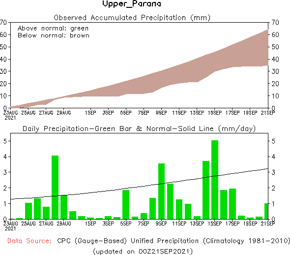 Los embalses de acumulación del Brasil que se ubican en la cuenca alta del río Paraná, aguas arriba de la Central Hidroeléctrica de Yacyretá, se encuentran con volúmenes útiles y niveles muy por debajo de lo normal debido a las escasas precipitaciones registradas.