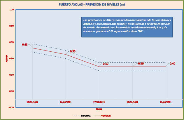 Las previsiones de Alturas son realizadas considerando las condiciones actuales y pronósticos disponibles y están sujetas a revisión en función de eventuales cambios en las condiciones hidrometeorológicas y de las descargas de las C.H. aguas arriba de la CHY.