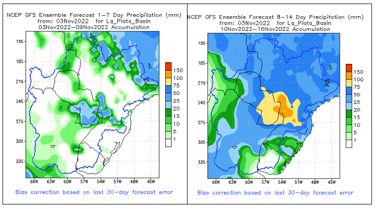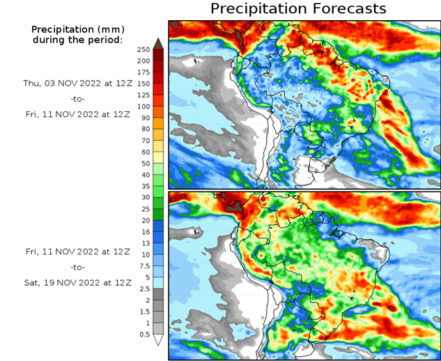 El pronóstico Hidrometeorológico del Centro Climático de referencia indica una tendencia semanal de poca significancia hidrológica en la cuenca de interés para la CHY con dispersión geográfica según sea la fuente consultada. (Ver gráfico Nro. 1).