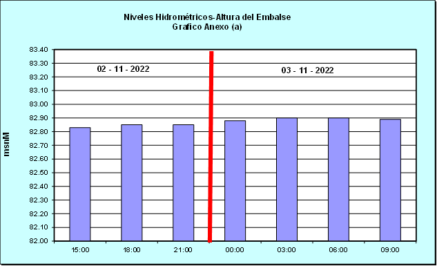 Nivel de Ayer (06:00 hs) = 82.83 mSNM Nivel de Hoy (06:00 hs) = 82.90 Msnm