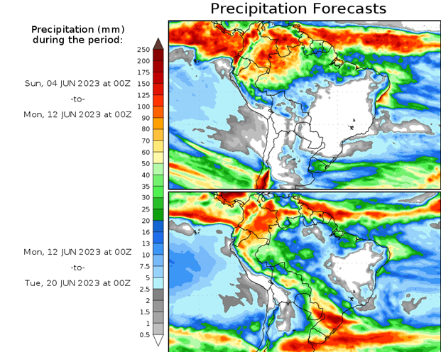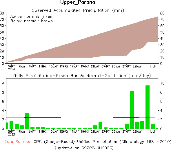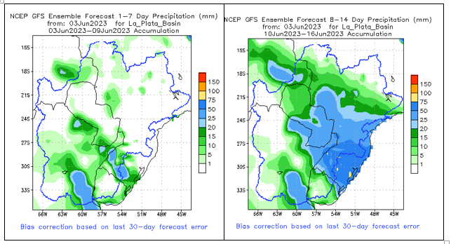 El pronóstico Hidrometeorológico del Centro Climático de referencia indica una tendencia semanal de poca significancia hidrológica en la cuenca de interés para la CHY con dispersión geográfica según sea la fuente consultada. (Ver gráfico Nro. 1).