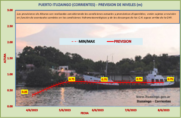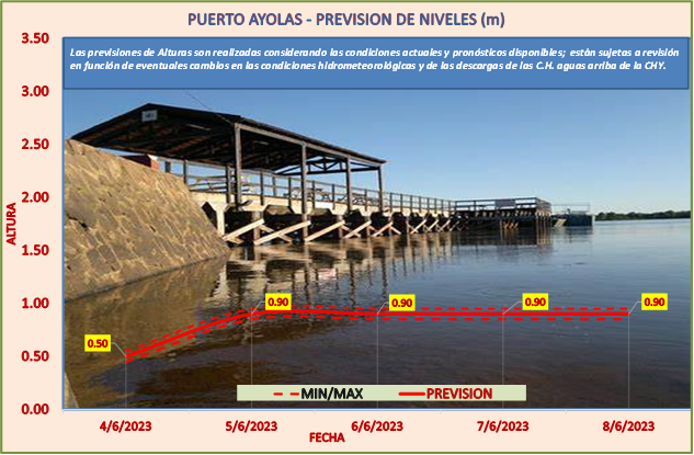 Las previsiones de Alturas son realizadas considerando las condiciones actuales y pronósticos disponibles y están sujetas a revisión en función de eventuales cambios en las condiciones hidrometeorológicas y de las descargas de las C.H. aguas arriba de la CHY.
