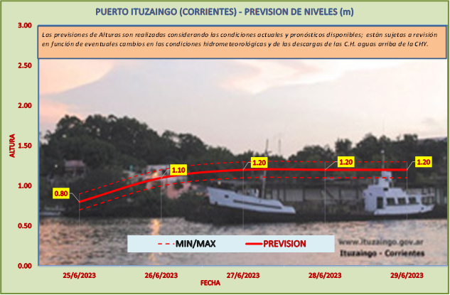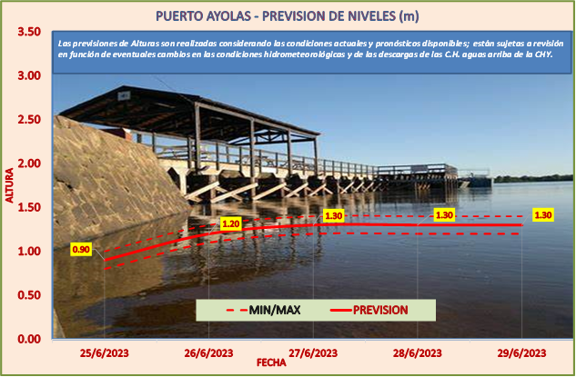 Las previsiones de Alturas son realizadas considerando las condiciones actuales y pronósticos disponibles y están sujetas a revisión en función de eventuales cambios en las condiciones hidrometeorológicas y de las descargas de las C.H. aguas arriba de la CHY.