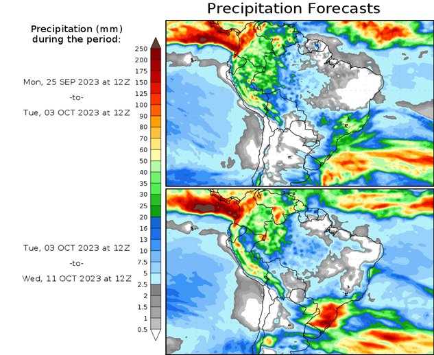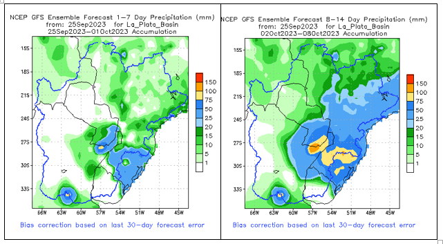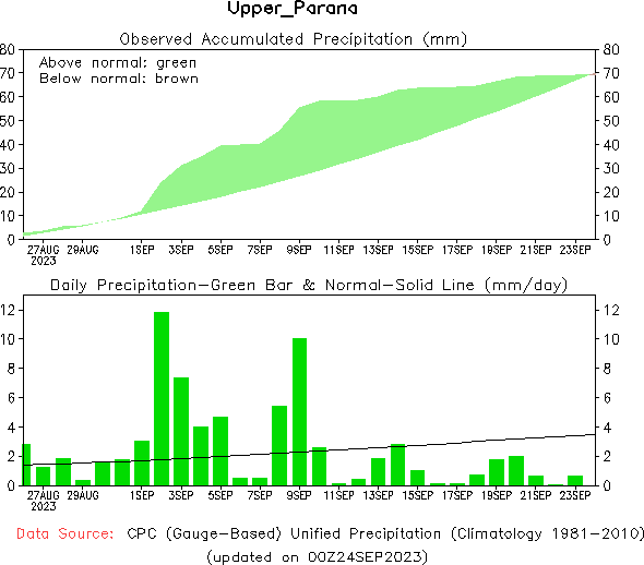 El pronóstico Hidrometeorológico del Centro Climático de referencia indica una tendencia semanal de leve significancia hidrológica en la cuenca de interés para la CHY con dispersión geográfica según sea la fuente consultada. (Ver gráfico Nro. 1).