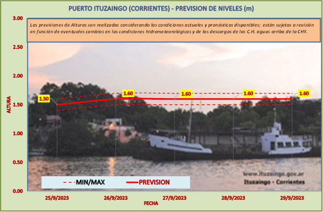 Las previsiones de Alturas son realizadas considerando las condiciones actuales y pronósticos disponibles y están sujetas a revisión en función de eventuales cambios en las condiciones hidrometeorológicas y de las descargas de las C.H. aguas arriba de la CHY.