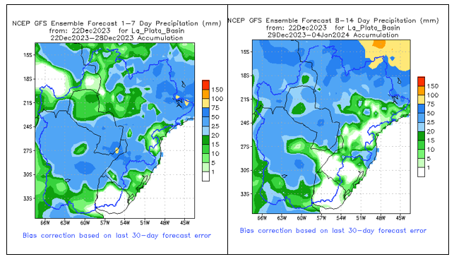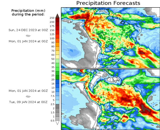 El pronóstico Hidrometeorológico del Centro Climático de referencia indica una tendencia semanal de leve significancia hidrológica en la cuenca de interés para la CHY con dispersión geográfica según sea la fuente consultada. (Ver gráfico Nro. 1).