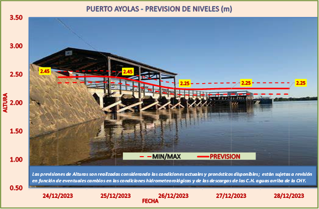 Las previsiones de Alturas son realizadas considerando las condiciones actuales y pronósticos disponibles y están sujetas a revisión en función de eventuales cambios en las condiciones hidrometeorológicas y de las descargas de las C.H. aguas arriba de la CHY.