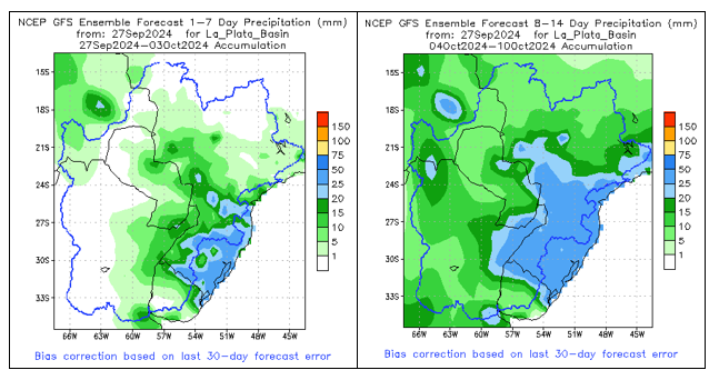 El pronóstico Hidrometeorológico del Centro Climático de referencia indica una tendencia semanal de poca significancia hidrológica en la cuenca de interés para la CHY con dispersión geográfica según sea la fuente consultada. (Ver gráfico Nro. 1).