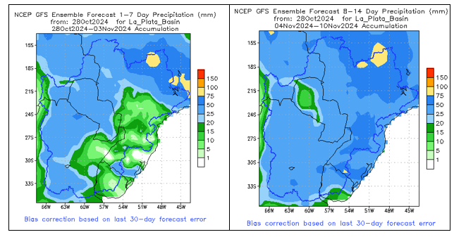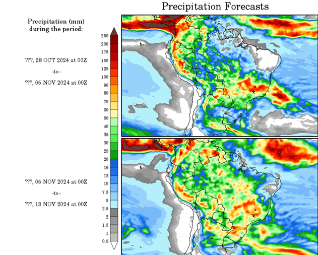 El pronóstico Hidrometeorológico del Centro Climático de referencia indica una tendencia semanal de poca significancia hidrológica en la cuenca de interés para la CHY con dispersión geográfica según sea la fuente consultada. (Ver gráfico Nro. 1).