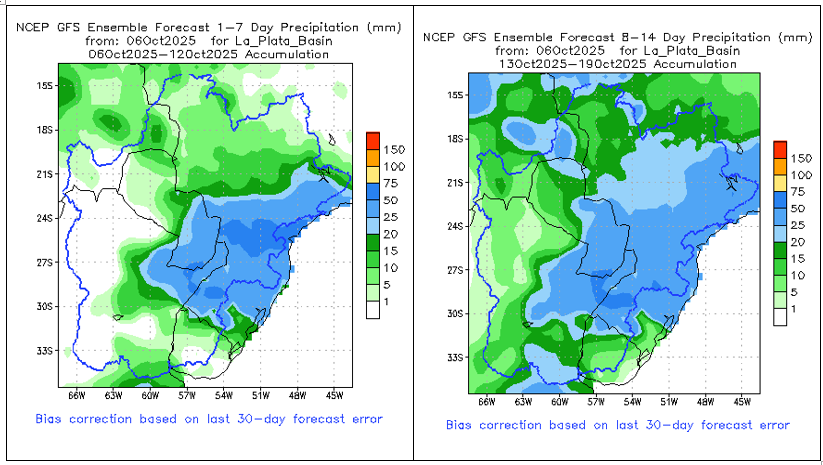 El pronóstico Hidrometeorológico del Centro Climático de referencia indica una tendencia semanal de poca significancia hidrológica en la cuenca de interés para la CHY con dispersión geográfica según sea la fuente consultada. (Ver gráfico Nro. 1).