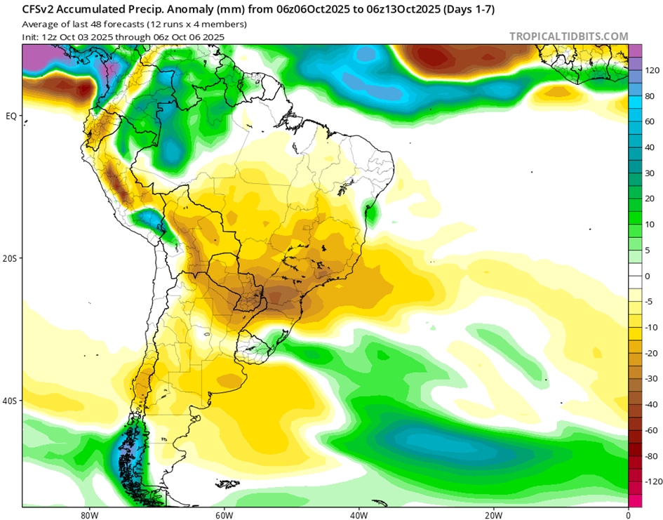 El fenómeno de El Niño-Oscilación del Sur (ENOS) se mantiene neutral. El último valor de Niño3.4 para la semana que finalizó el 24 de agosto es de -0,28 °C. Los valores neutrales de ENOS para Niño3.4 se encuentran entre -0,8 °C y +0,8 °C. Si bien las aguas subsuperficiales del Pacífico tropical han mostrado signos de enfriamiento en las últimas semanas, los indicadores atmosféricos se mantienen mayormente neutrales.