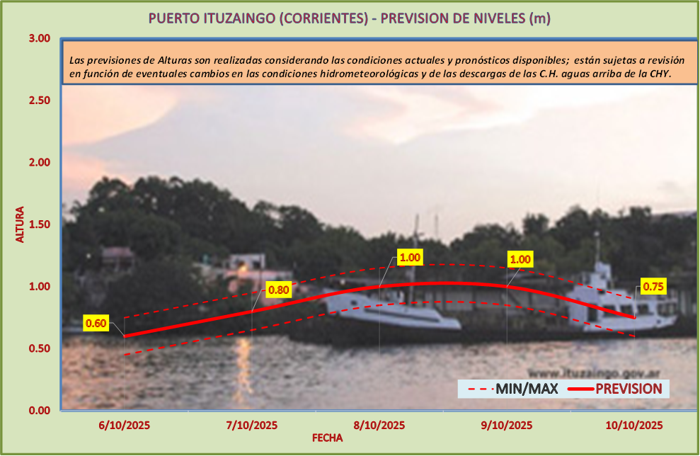 Las previsiones de Alturas son realizadas considerando las condiciones actuales y pronósticos disponibles y están sujetas a revisión en función de eventuales cambios en las condiciones hidrometeorológicas y de las descargas de las C.H. aguas arriba de la CHY.