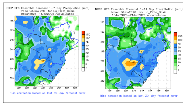 • El índice del Modo Anular Sur (SAM) se mantiene neutral al 3 de enero de 2026. Se prevé que se mantenga prácticamente neutral durante las próximas dos semanas. Posteriormente, existen diversos resultados posibles, lo que implica una menor claridad en la probable fase del SAM.