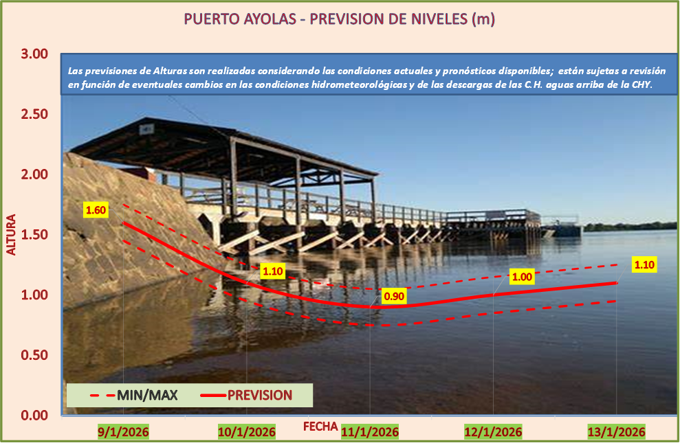 Las previsiones de Alturas son realizadas considerando las condiciones actuales y pronósticos disponibles y están sujetas a revisión en función de eventuales cambios en las condiciones hidrometeorológicas y de las descargas de las C.H. aguas arriba de la CHY.