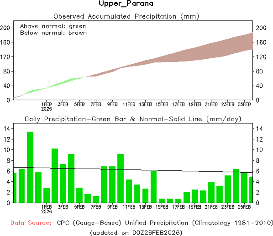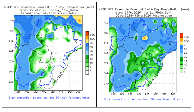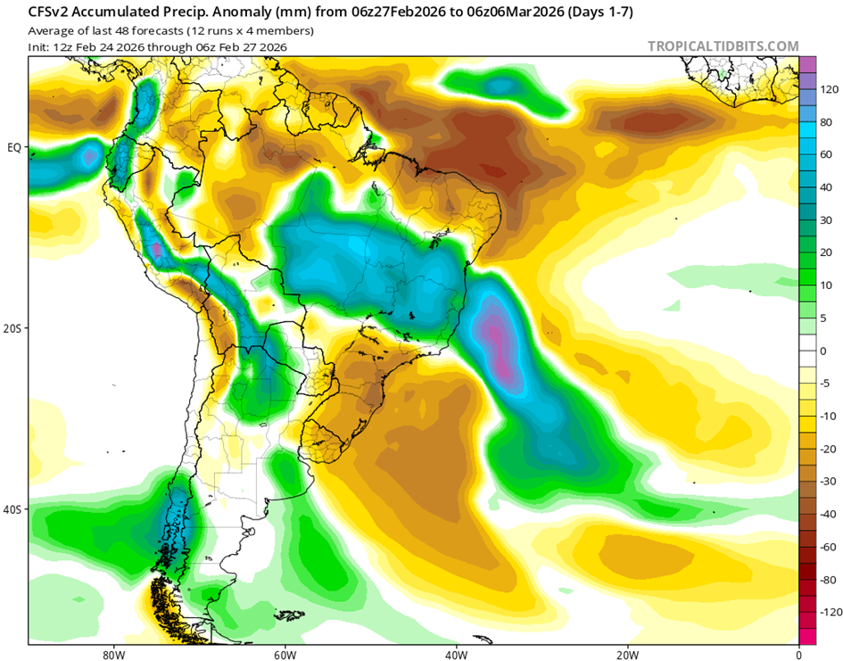 • Los vientos alisios en el Pacífico ecuatorial han sido cercanos o ligeramente más fuertes que el promedio en las últimas semanas. Los pronósticos de la Oscilación Madden-Julian sugieren que los vientos alisios podrían debilitarse en las próximas dos semanas, lo que podría contribuir a la ruptura del patrón de La Niña.