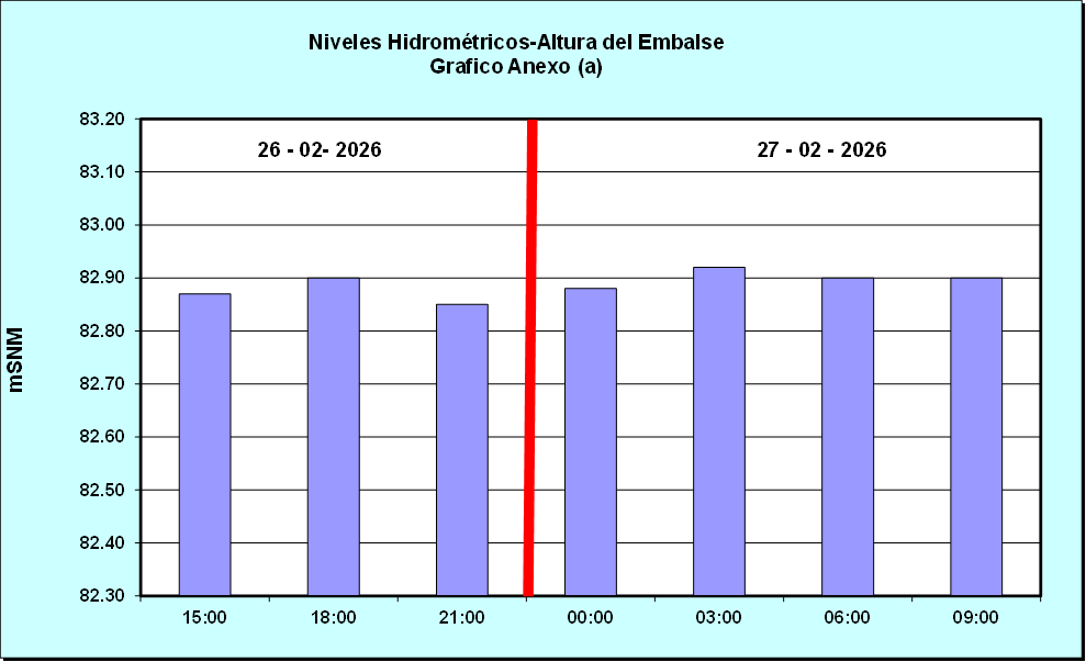Nivel de Ayer (06:00 hs) = 82.94 mSNM Nivel de Hoy (06:00 hs) = 82.90 mSNM