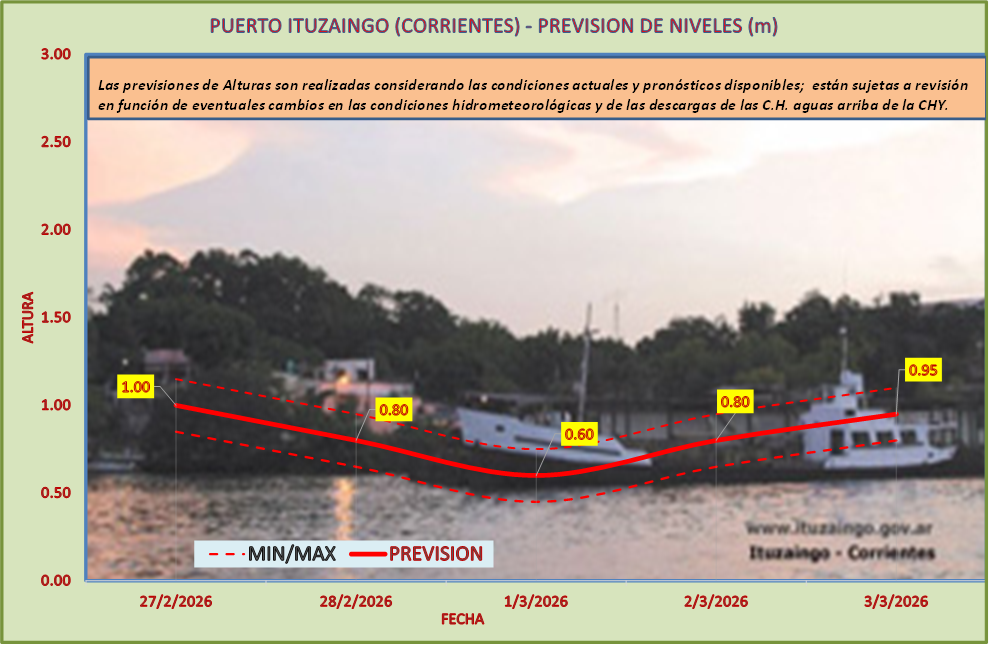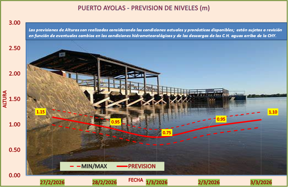 Las previsiones de Alturas son realizadas considerando las condiciones actuales y pronósticos disponibles y están sujetas a revisión en función de eventuales cambios en las condiciones hidrometeorológicas y de las descargas de las C.H. aguas arriba de la CHY.