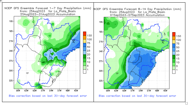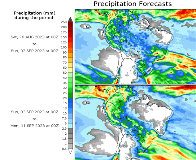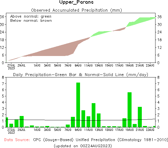El pronóstico Hidrometeorológico del Centro Climático de referencia indica una tendencia semanal de poca significancia hidrológica en la cuenca de interés para la CHY con dispersión geográfica según sea la fuente consultada. (Ver gráfico Nro. 1).