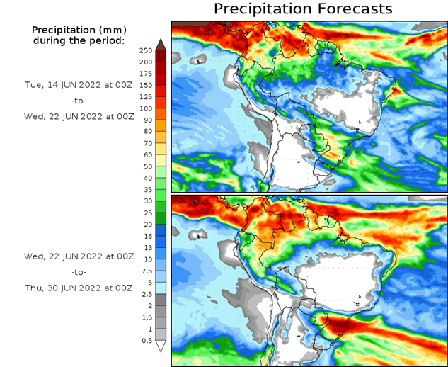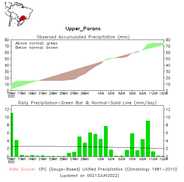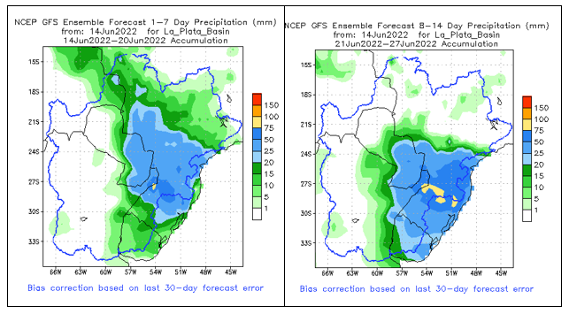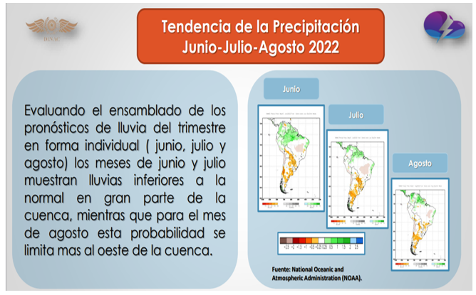 El pronóstico Hidrometeorológico del Centro Climático de referencia indica una tendencia semanal de significancia hidrológica en la cuenca de interés para la CHY con dispersión geográfica según sea la fuente consultada. (Ver gráfico Nro. 1).
