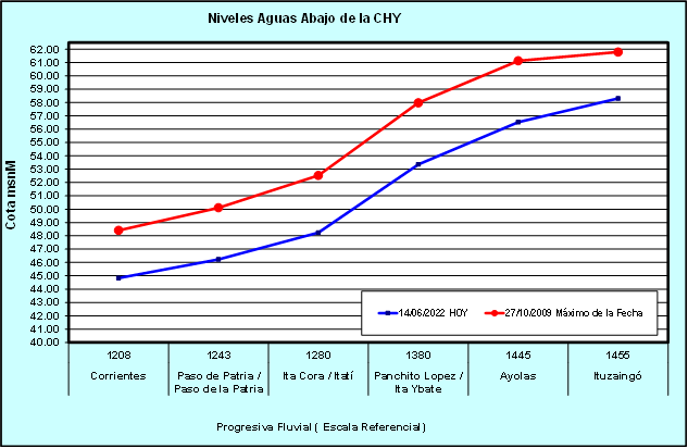 REFERENCIA: A modo de información – valores que originan riesgos de inundación en la zona de Ayolas.