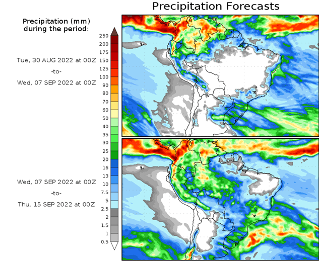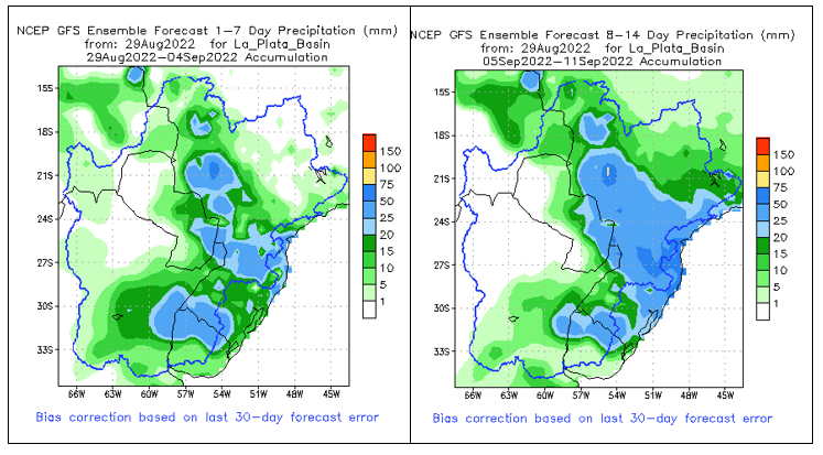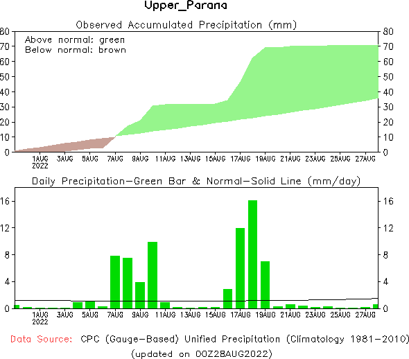 El pronóstico Hidrometeorológico del Centro Climático de referencia indica una tendencia semanal de poca significancia hidrológica en la cuenca de interés para la CHY con dispersión geográfica según sea la fuente consultada. (Ver gráfico Nro. 1).