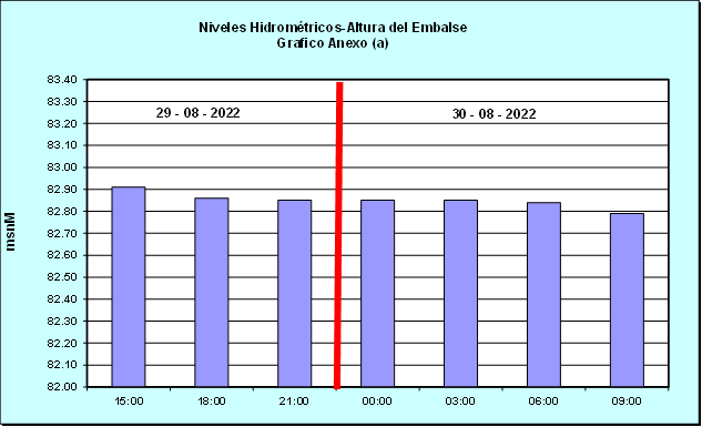 Nivel de Ayer (06:00 hs) = 82.91 mSNM Nivel de Hoy (06:00 hs) = 82.84 Msnm