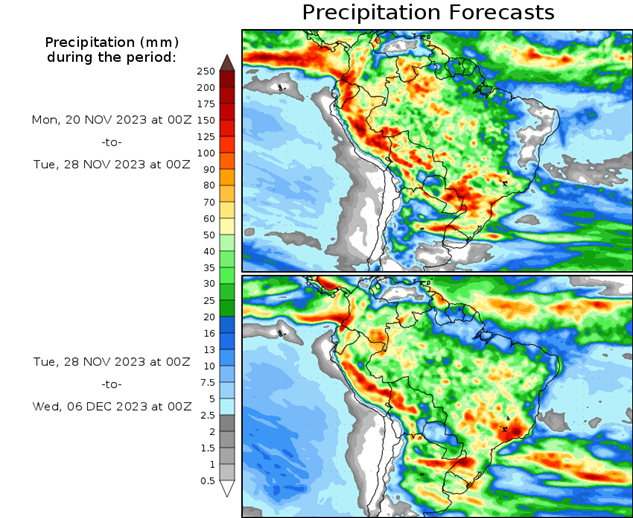 El pronóstico Hidrometeorológico del Centro Climático de referencia indica una tendencia semanal de significancia hidrológica en la cuenca de interés para la CHY con dispersión geográfica según sea la fuente consultada. (Ver gráfico Nro. 1).