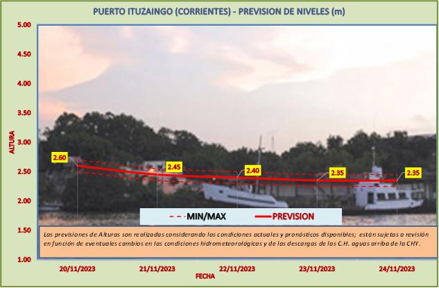 Las previsiones de Alturas son realizadas considerando las condiciones actuales y pronósticos disponibles y están sujetas a revisión en función de eventuales cambios en las condiciones hidrometeorológicas y de las descargas de las C.H. aguas arriba de la CHY.