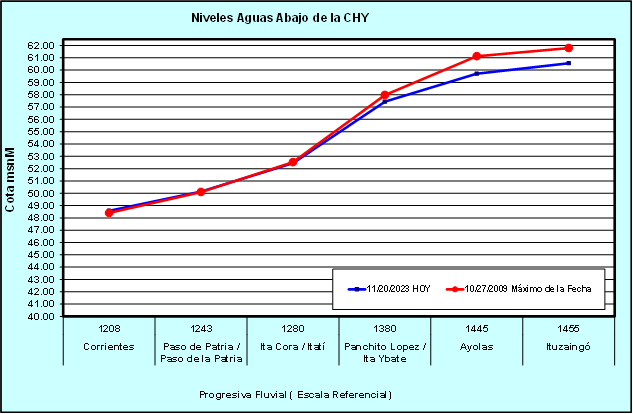 REFERENCIA: A modo de información – valores que originan riesgos de inundación en la zona de Ayolas.