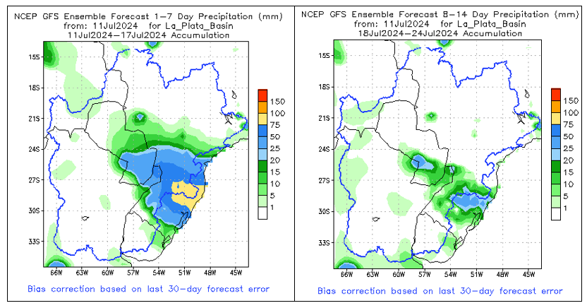 El pronóstico Hidrometeorológico del Centro Climático de referencia indica una tendencia semanal de leve significancia hidrológica en la cuenca de interés para la CHY con dispersión geográfica según sea la fuente consultada. (Ver gráfico Nro. 1).
