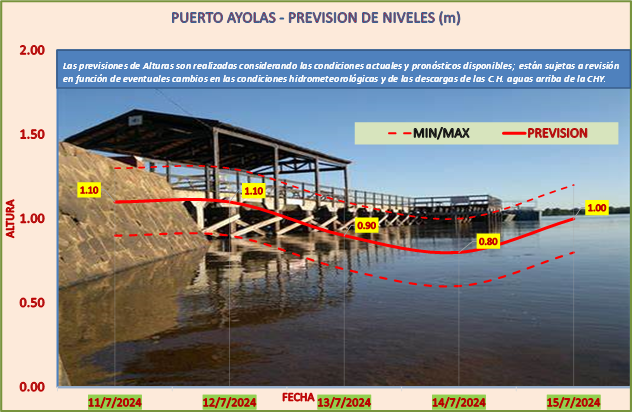 Las previsiones de Alturas son realizadas considerando las condiciones actuales y pronósticos disponibles y están sujetas a revisión en función de eventuales cambios en las condiciones hidrometeorológicas y de las descargas de las C.H. aguas arriba de la CHY.