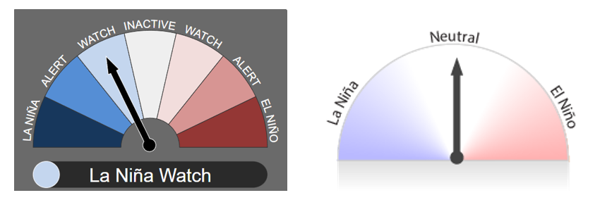 La Perspectiva ENSO se encuentra actualmente en ‘Vigilancia de La Niña’, lo que significa que hay algunas señales de que La Niña podría formarse en el Océano Pacífico más adelante en 2024. Los indicadores atmosféricos y oceánicos se encuentran actualmente dentro de los umbrales neutrales de ENSO.
