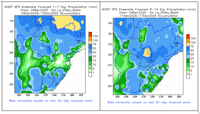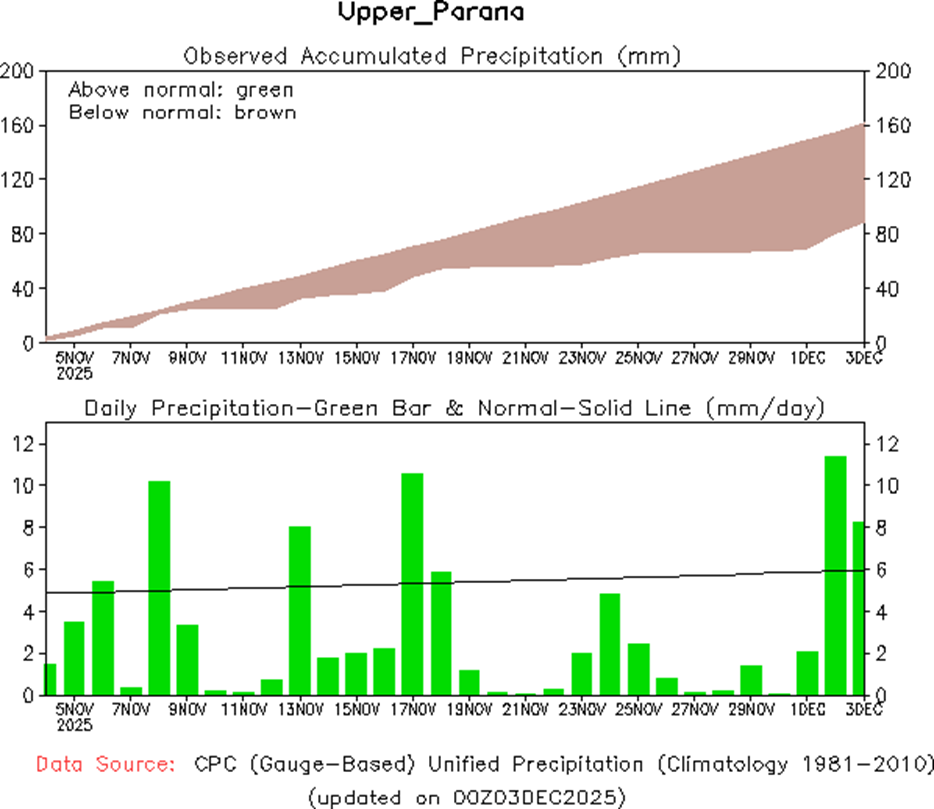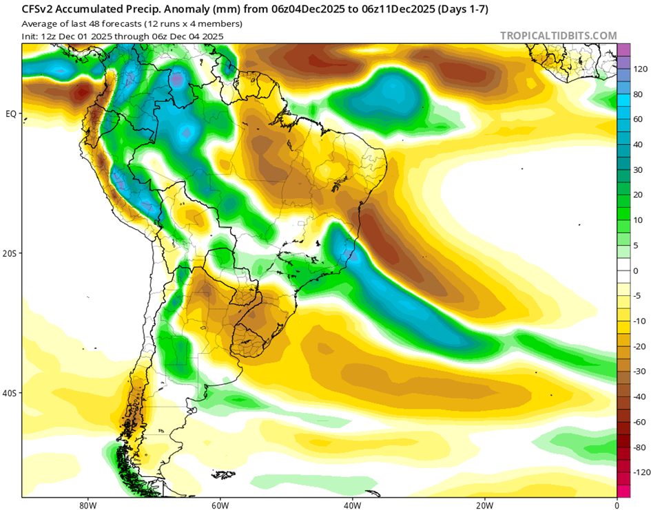 • El índice del Modo Anular del Sur (SAM) se mantiene neutral al 21 de noviembre de 2025. Se prevé que se torne negativo durante la próxima semana. Sin embargo, existe un amplio rango de posibles resultados, lo que indica una mayor incertidumbre hacia diciembre.