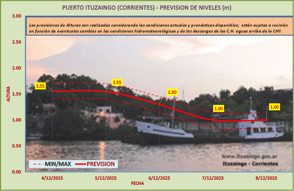 Las previsiones de Alturas son realizadas considerando las condiciones actuales y pronósticos disponibles y están sujetas a revisión en función de eventuales cambios en las condiciones hidrometeorológicas y de las descargas de las C.H. aguas arriba de la CHY.