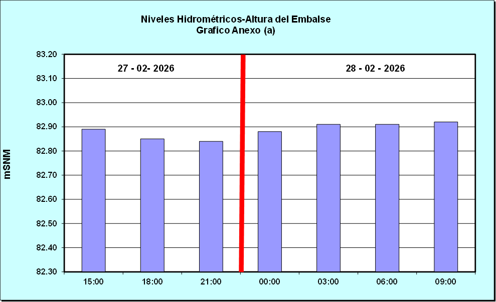 Nivel de Ayer (06:00 hs) = 82.90 mSNM Nivel de Hoy (06:00 hs) = 82.91 mSNM