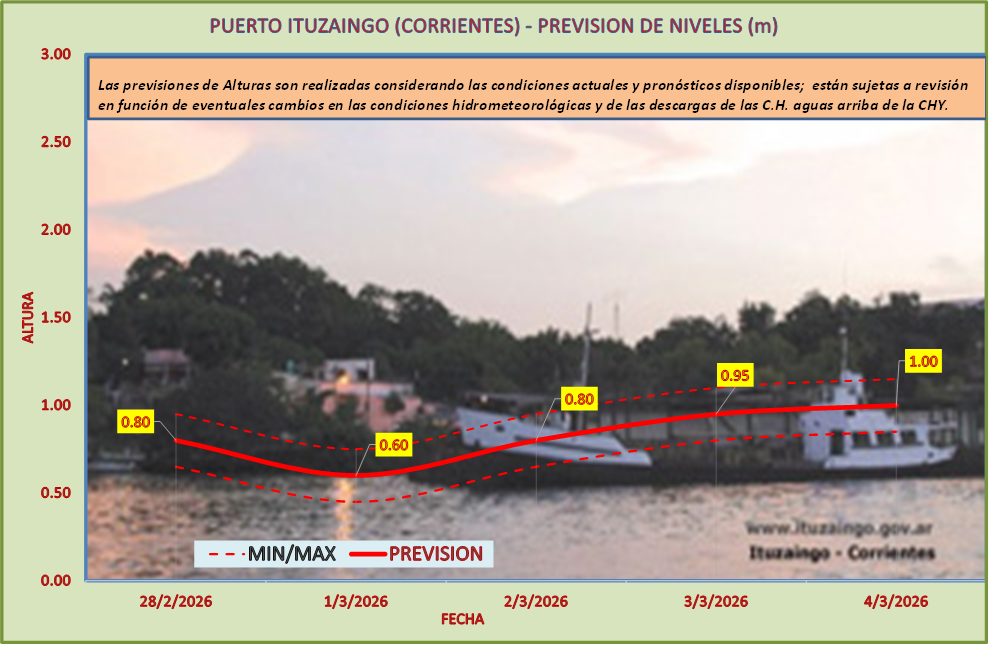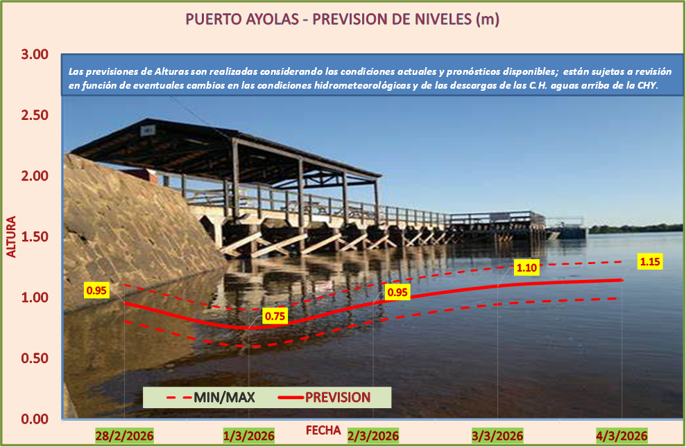 Las previsiones de Alturas son realizadas considerando las condiciones actuales y pronósticos disponibles y están sujetas a revisión en función de eventuales cambios en las condiciones hidrometeorológicas y de las descargas de las C.H. aguas arriba de la CHY.