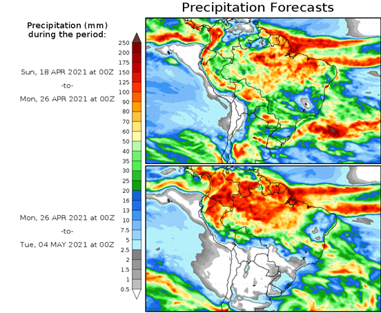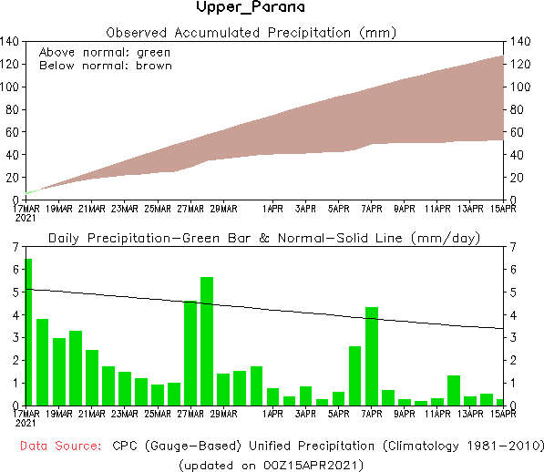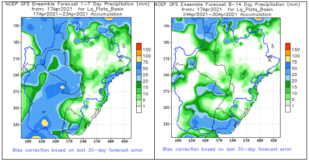 El pronóstico Hidrometeorológico del Centro Climático de referencia indica una tendencia semanal de poca significancia hidrológica en la cuenca de interés para la CHY con dispersión geográfica según sea la fuente consultada. (Ver gráfico Nro. 1).