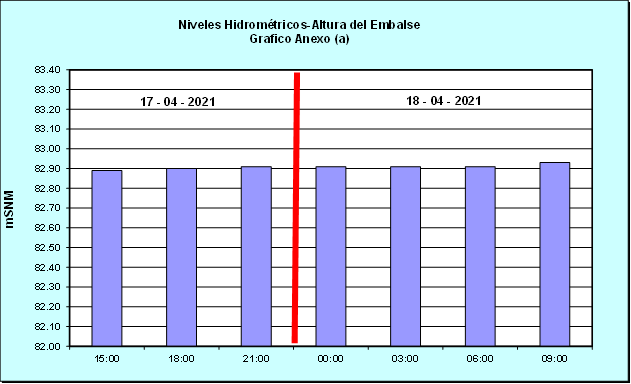 Nivel de Ayer (06:00 hs) = 82.89 mSNM Nivel de Hoy (06:00 hs) = 82.91 mSNM