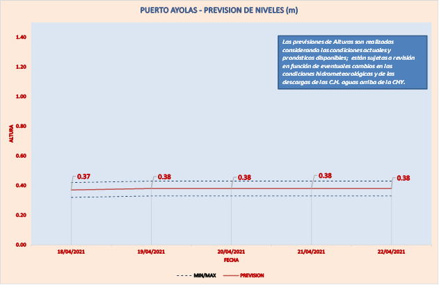 Las previsiones de Alturas son realizadas considerando las condiciones actuales y pronósticos disponibles y están sujetas a revisión en función de eventuales cambios en las condiciones hidrometeorológicas y de las descargas de las C.H. aguas arriba de la CHY.