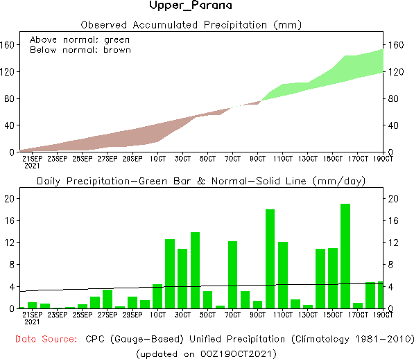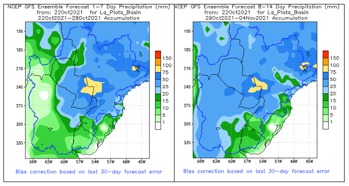 El pronóstico Hidrometeorológico del Centro Climático de referencia indica una tendencia semanal de poca significancia hidrológica en la cuenca de interés para la CHY con dispersión geográfica según sea la fuente consultada. (Ver gráfico Nro. 1).