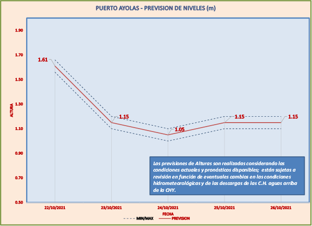 Las previsiones de Alturas son realizadas considerando las condiciones actuales y pronósticos disponibles y están sujetas a revisión en función de eventuales cambios en las condiciones hidrometeorológicas y de las descargas de las C.H. aguas arriba de la CHY.